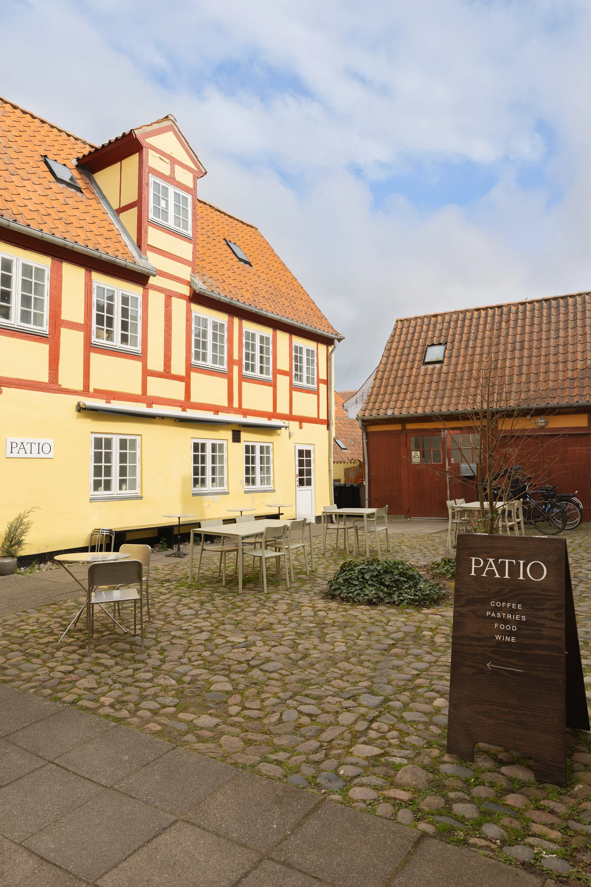 ↑ Patio is a stylish café in the heart of Helsingør. Enjoy breakfast, lunch, coffee & pastries here, and stroll though the adjacent cobbled streets after your lunch break.