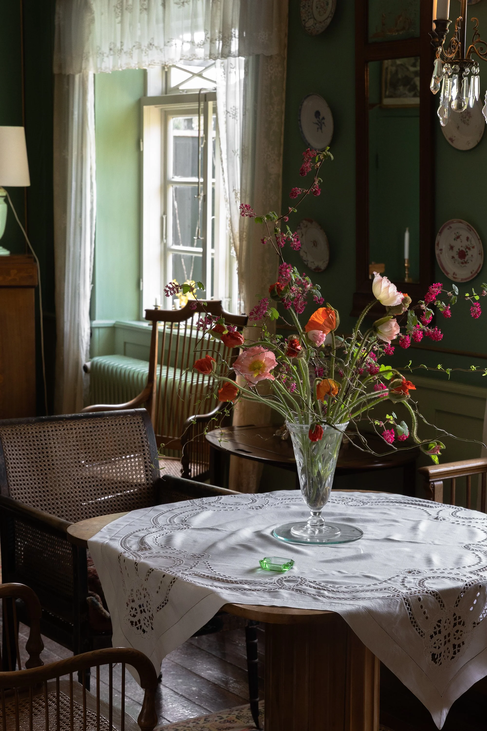 ↑ The private home of Danish author Karen Blixen has been transformed to a museum as part of Rungstedlund. Here, visitors get a unique look into the private rooms of Karen Blixen, preserved as she left them after her death in 1962. Fresh flowers decorated in Blixen’s characteristic style are arranged throughout the house.
